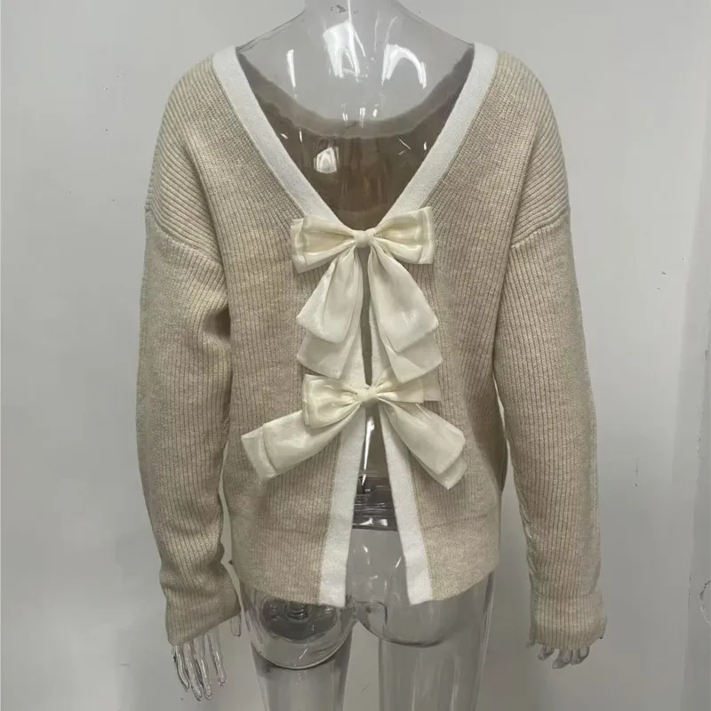 Be the first to review “Autumn and winter new sweater women’s fashion back bow decoration round neck pullover knitted sweater”