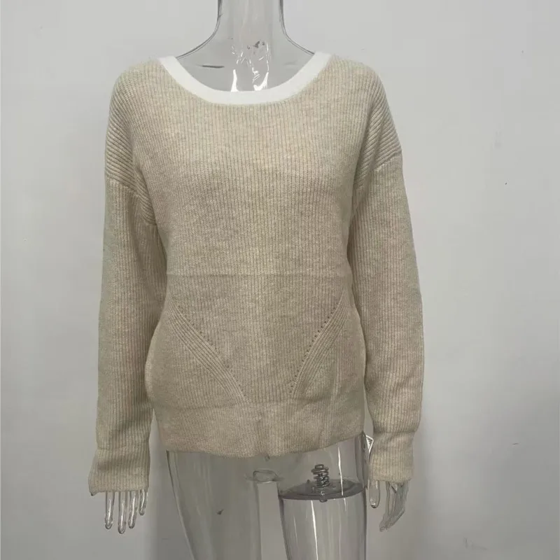 Autumn and winter new sweater women’s fashion back bow decoration round neck pullover knitted sweater