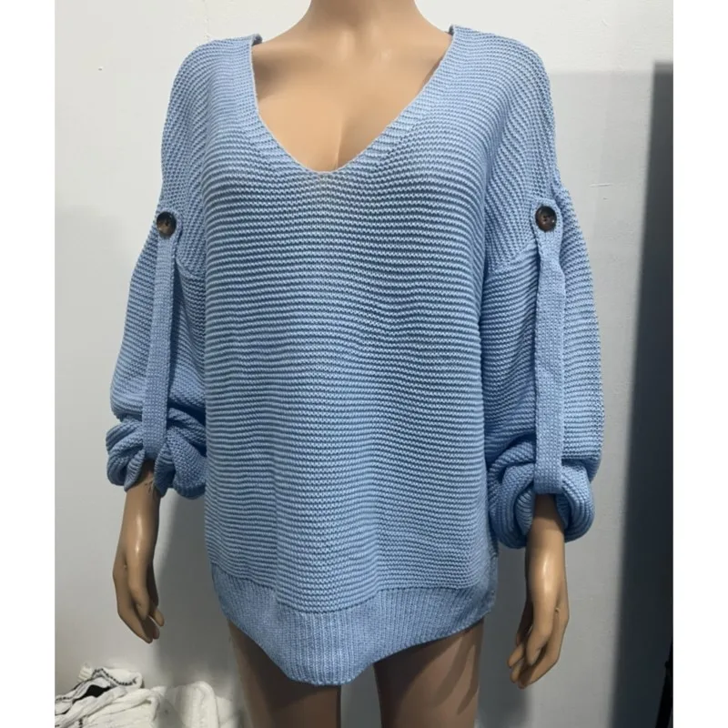 Occasion: Office whether full opening: No High-concerned chemical: None Release Date: Winter 2025 Craft of Weaving: Knit Season: Autumn/Winter Age: 25-34 Fabric Weight: Medium (Fabric Weight 120–220 g/m²) Model Number: LT0013 Place Of Origin: China (mainland) Pattern Type: Solid Gender: Women Sleeve Length(cm): Long Sleeves Style: Office Lady Decoration: Button Material: Acrylic Sleeve Style: Flare Sleeve Collar: V-Neck Clothing Length: regular Brand Name: owner girl Closure Type: Pullover Elasticity: Non Strech Fit Type: Loose Origin: Mainland China CN: Jiangxi