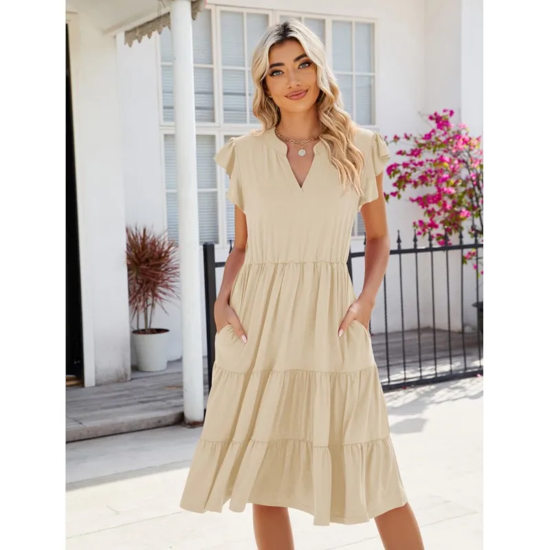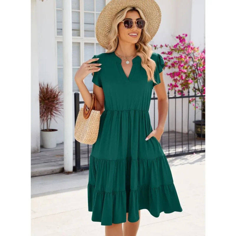 High-concerned chemical: None Craft of Weaving: Tatting Release Date: Winter 2024 Closure Type: Pullover Profile Type: A Fabric Type: POLYESTER Type: regular Age: Junior Place Of Origin: China (mainland) Model Number: 7692 Season: Summer Neckline: V-Neck Sleeve Style: Butterfly Sleeve Dresses Length: Mid-Calf Decoration: Folds Sleeve Length(cm): Sleeveless Pattern Type: Solid Silhouette: A-LINE Style: Office Lady Material: POLYESTER,Viscose,PU Gender: Women Origin: Mainland China Brand Name: owner girl Elasticity: Non Strech Fit Type: Loose CN: Jiangxi